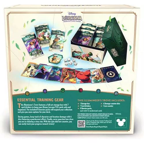 The ultimate treasure for both collectors and players, the illumineer’s trove contains a full-art storage box with seven card dividers to keep your disney lorcana tcg cards safe and organized by ink.
