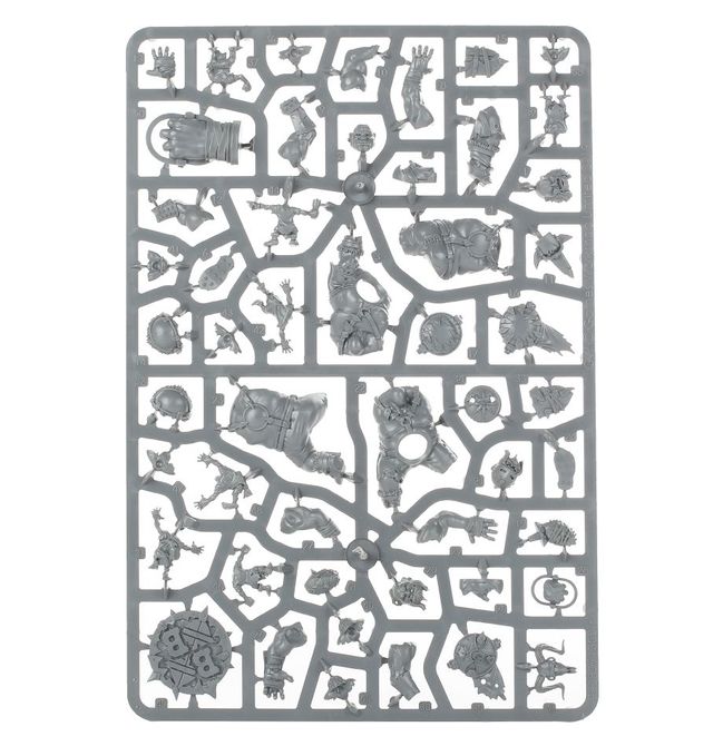 This multipart plastic kit contains all the components you'll need to build the Fire Mountain Gut Busters, an Ogre team for use in games of Blood Bowl, containing 4 Ogres (1 of which can be built as a Runt Punter), and 12 Gnoblars with interchangeable heads! You'll also find a roster sheet, transfers, 2 turn counters and 2 coins, 4 Ogre-themed balls, and a mix of 14x 25mm Citadel Round bases and 4x 32mm Citadel Round Blood Bowl bases.