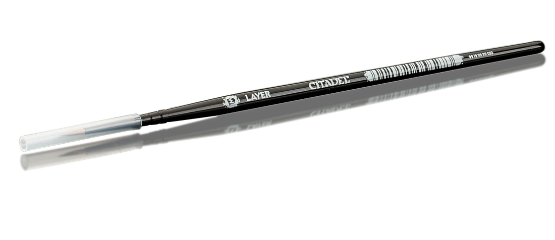 This medium brush (Citadel Medium Layer Brush) - perfect for layering - is hand made, with pure sable bristles in a fine point meaning exceptional control over details. The size makes it perfect for layering surfaces, and getting those effects that make your friends go ‘wow’.