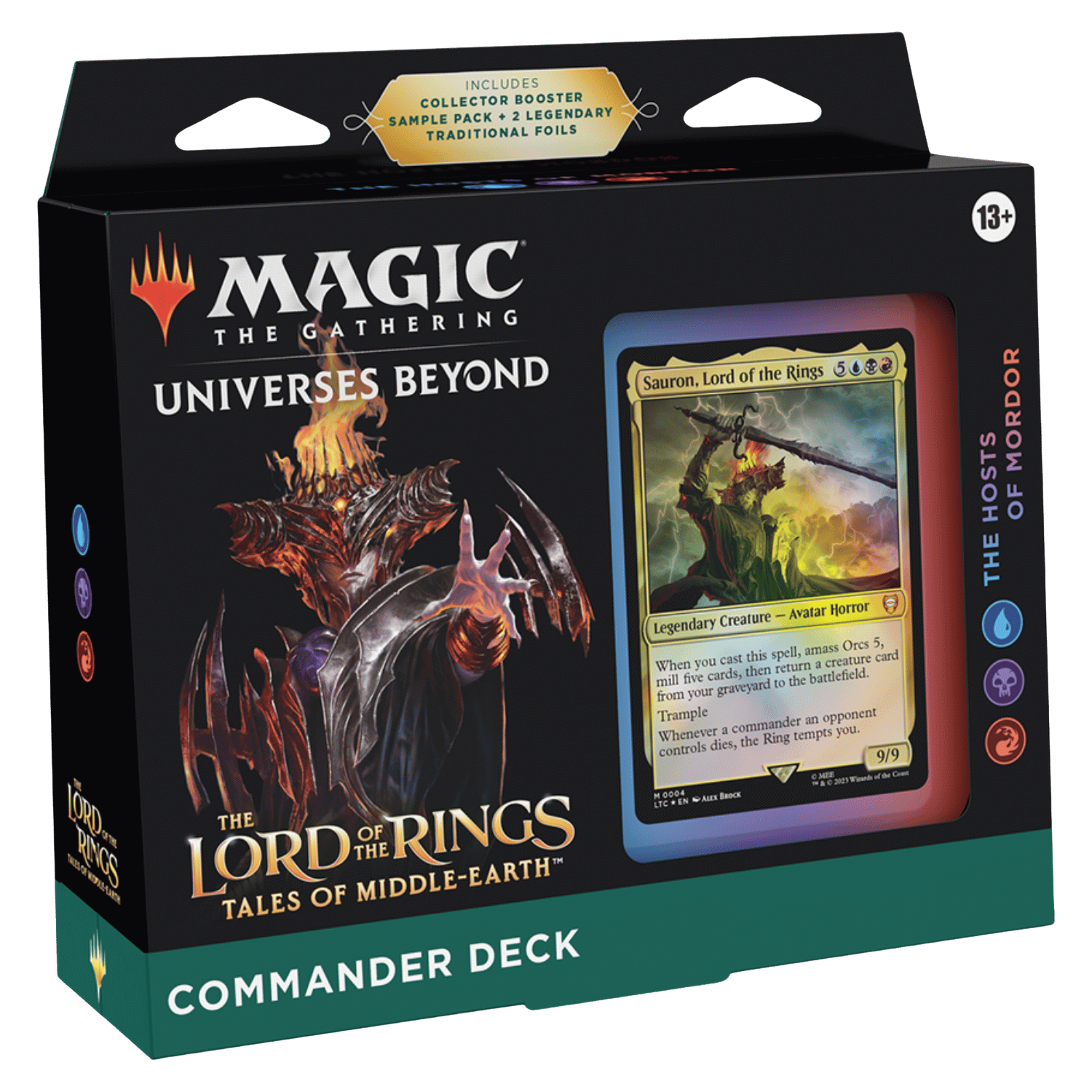 - THE HOSTS OF MORDOR—Join the hosts of Mordor with a 100-card Blue-Black-Red deck containing 2 Foil Legendary Creature cards and 98 nonfoil cards