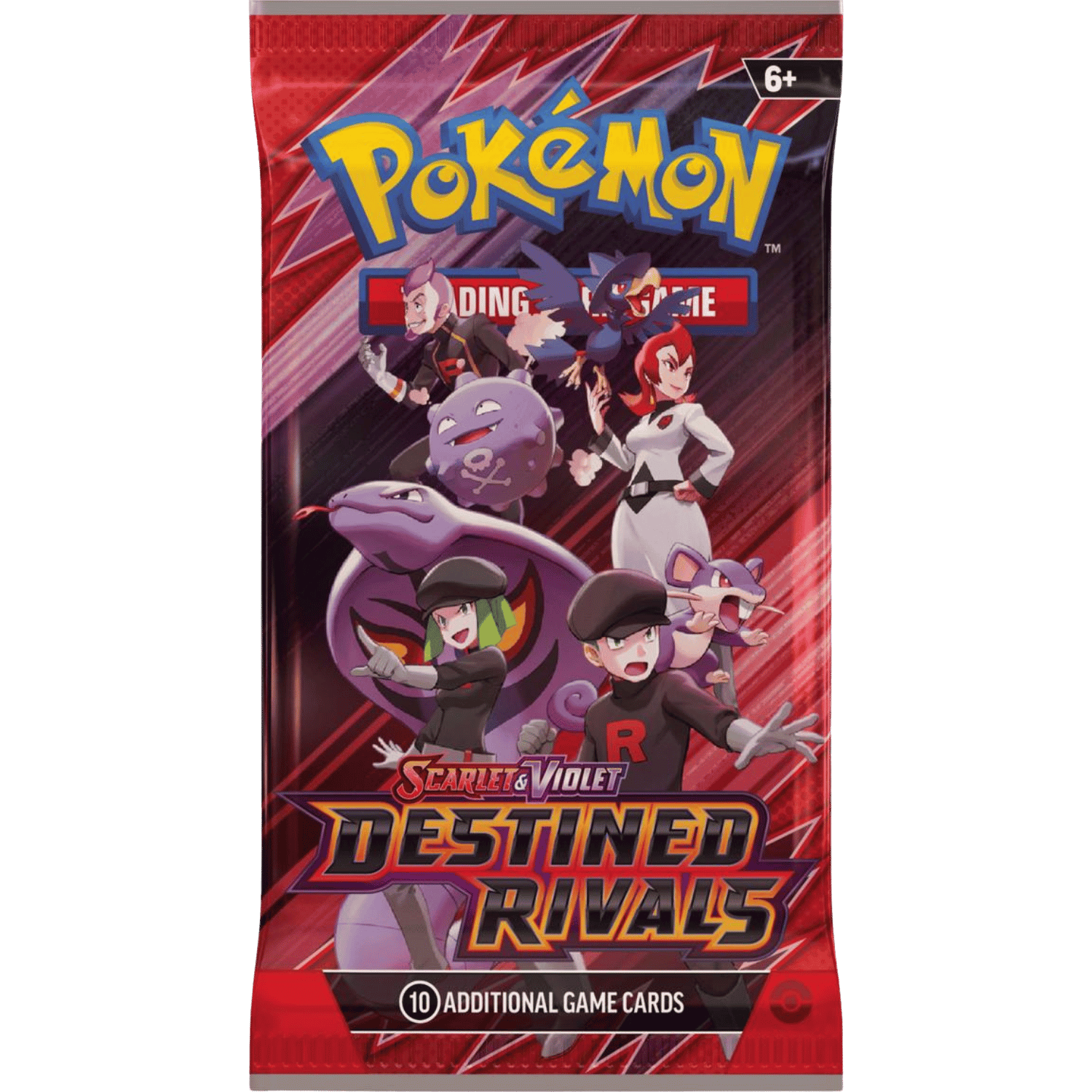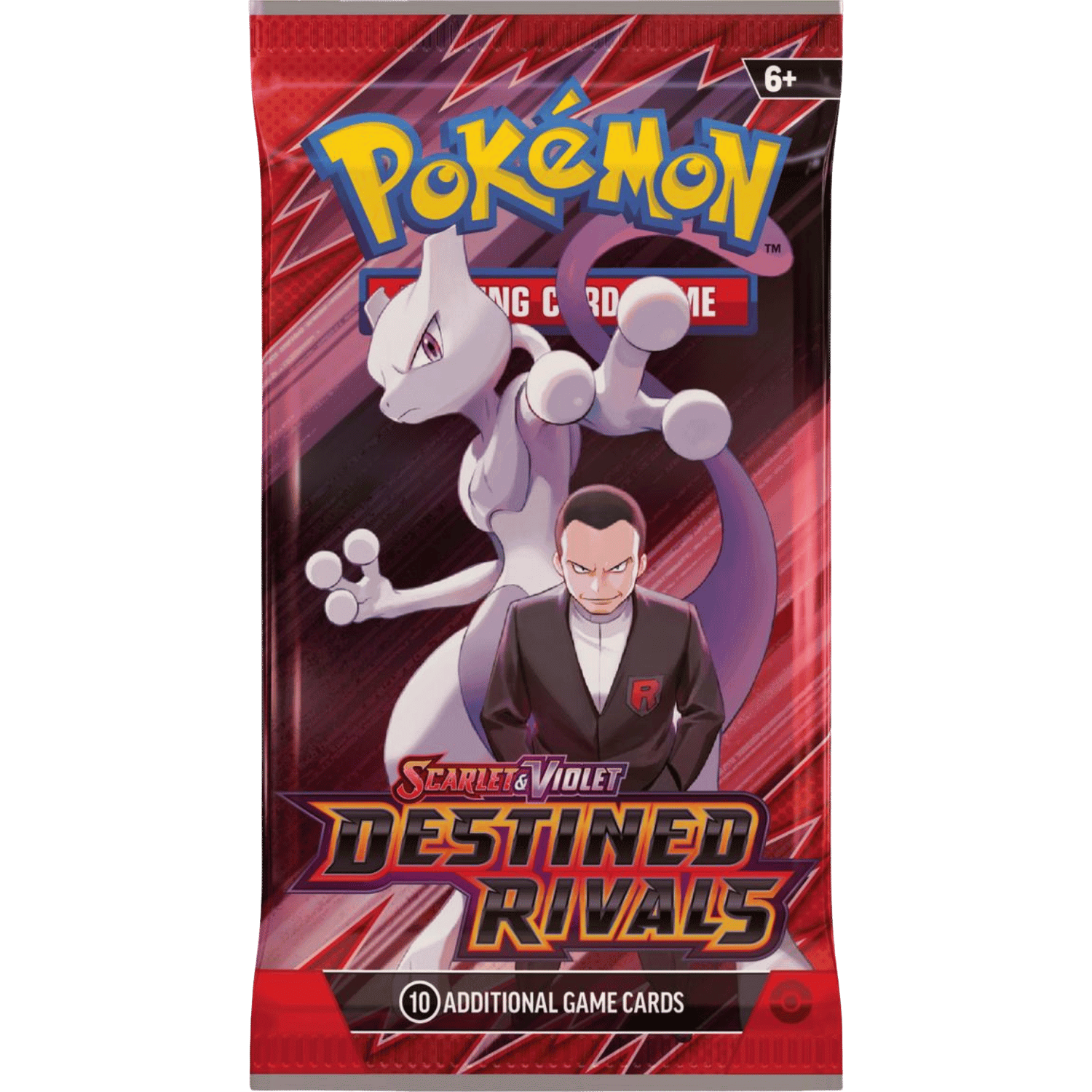 Pokémon Trainers, be on high alert! The nefarious Team Rocket is setting its latest plan into motion, and heroic Trainers are racing to stop it. Join forces with the likes of Cynthia and Garchomp ex, Ethan and Ho-Oh ex, or Arven and Mabosstiff ex… Or reconsider your loyalties and fight alongside Team Rocket’s Pokémon like Mewtwo ex—under the command of Giovanni! Choose a side, assemble your allies, and battle boldly in the Pokémon TCG: Scarlet & Violet—Destined Rivals expansion!