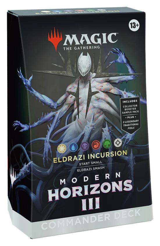 This set consists of four decks: Graveyard Overdrive, Tricky Terrain, Creative Energy and Eldrazi Incursion. Each deck also includes a two-card Collector Booster Sample Pack that gives you a nice taste of the great showcase cards from the set.