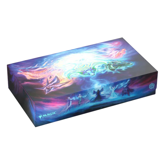 The Omnihive 1000+ Xenoskin gathers the mighty spirit dragons of Tarkir on a single deck box! Designed with two large main compartments and two flexibly positionable magnetic trays, the Omnihive can store up to 1000 single cards (double-sleeved), multiple deck boxes, accessories like dice, and/or play-mats simultaneously. The durable Xenoskin surface features the artwork Call the Spirit Dragons by Liiga Smilshkalne from Magic: The Gathering’s Tarkir: Dragonstorm set. The lid of the Omnihive is secured with strong magnets and our ZnapClaw mechanism, while the microfiber lining inside provides extra protection for cards, deck boxes, and accessories.