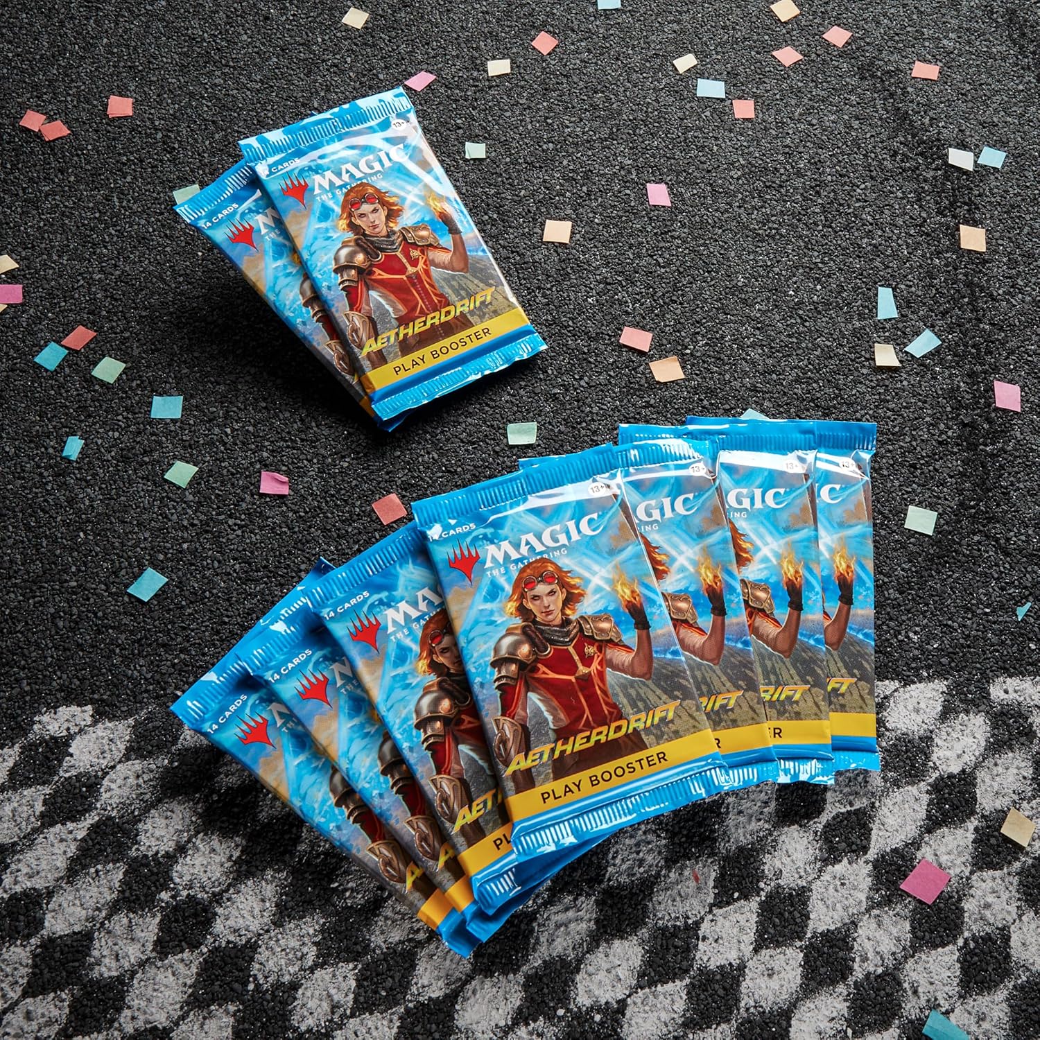 - BUNDLE CONTENTS—9 Aetherdrift MTG Play Boosters, 1 Traditional Foil alt-art card, 40 Land cards (20 foil, 20 nonfoil), 1 Spindown life counter, 1 card storage box, and 2 reference cards