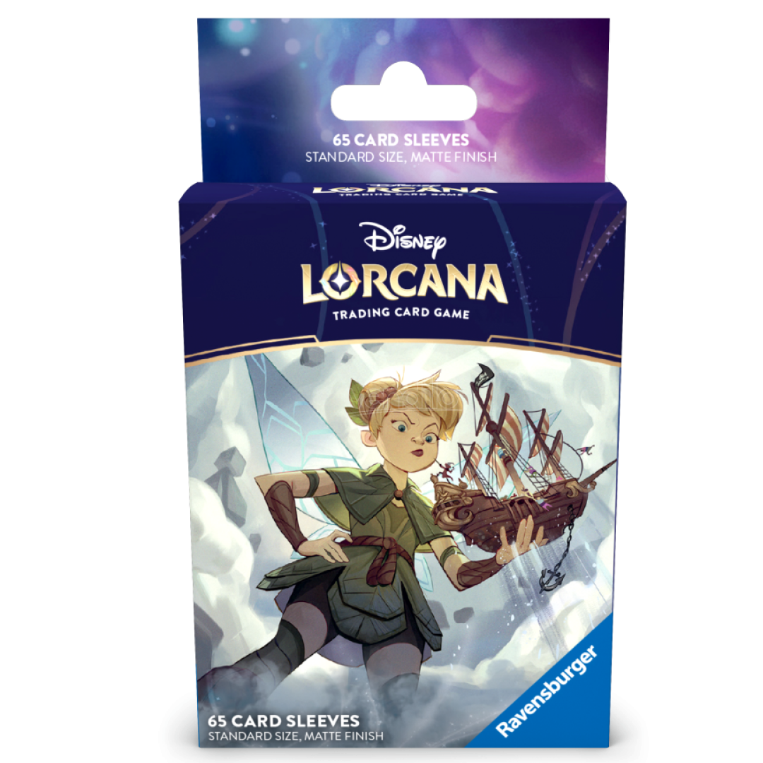 Protect cards from wear and tear during play with card sleeves featuring card art of Mickey Mouse – Wayward Sorcerer and Enchanted card art of Tinker Bell – Giant Fairy. Each pack includes 65 matte-finish Card Sleeves.