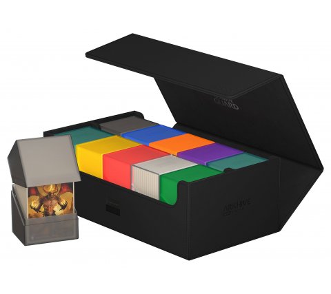 The Arkhive 800+ offers the quality you expect from Ultimate Guard and the Arkhive only this time with twice as much storage space. Not only can you store a large amount of cards in this box, you can also choose to use the modular design to store, for example, deck boxes. Here are just a few examples of what you can store in this beautiful chest: