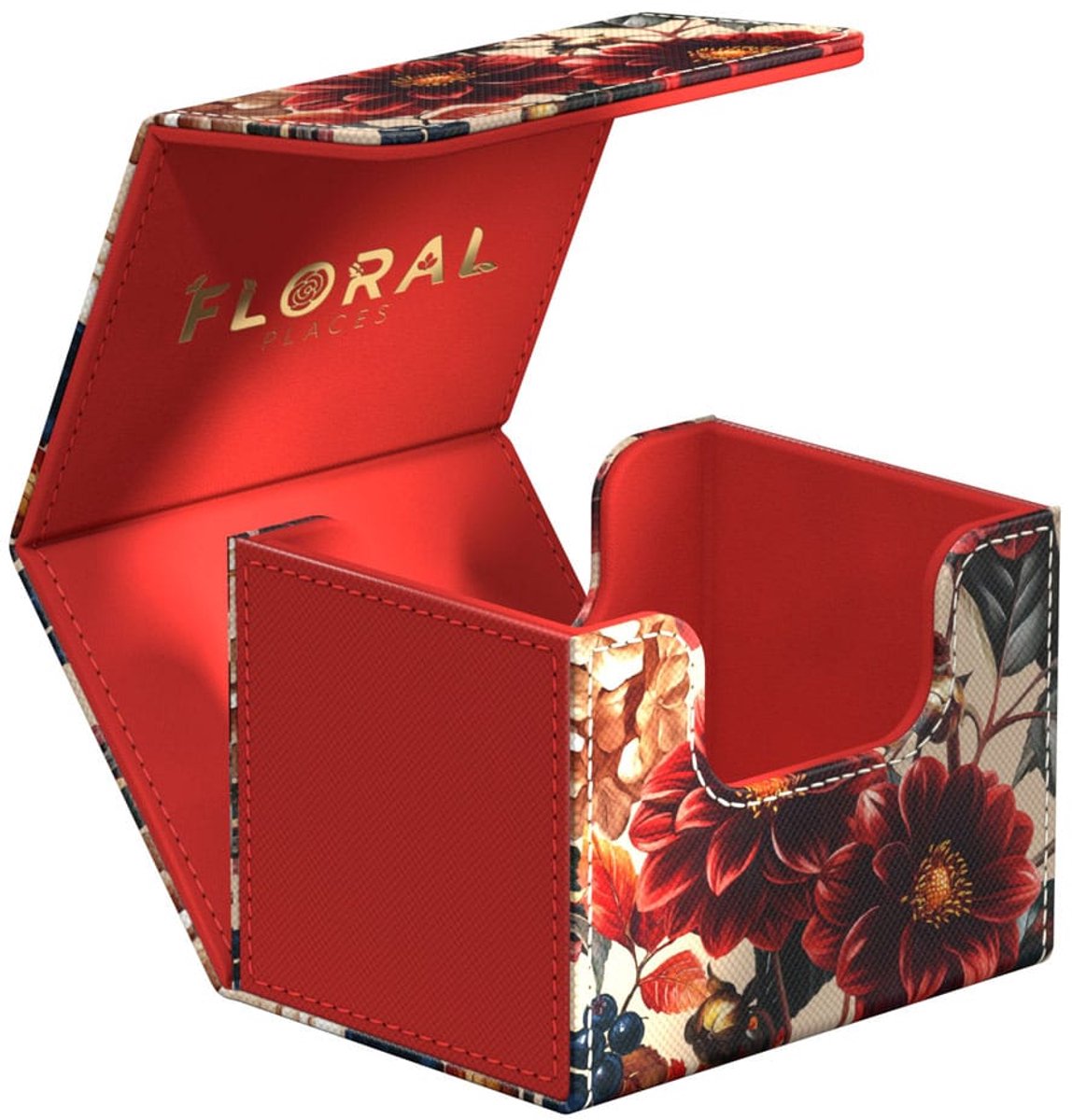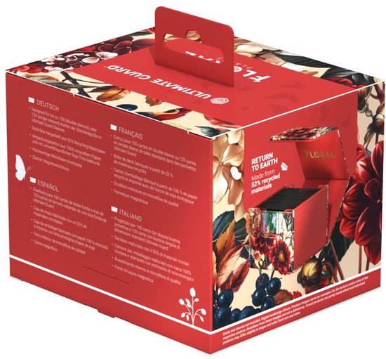 Designed to hold 100 double-sleeved trading cards in Ultimate Guard sleeves, our Floral Places Sidewinder is the perfect deck box for TCGs like Magic: The Gathering, Pokémon, Lorcana, One Piece, Yu-Gi-Oh!, Flesh and Blood and other TCGs.