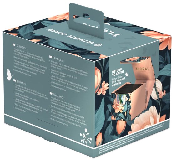 Designed to hold 100 double-sleeved trading cards in Ultimate Guard sleeves, our Floral Places Sidewinder is the perfect deck box for TCGs like Magic: The Gathering, Pokémon, Lorcana, One Piece, Yu-Gi-Oh!, Flesh and Blood and other TCGs.