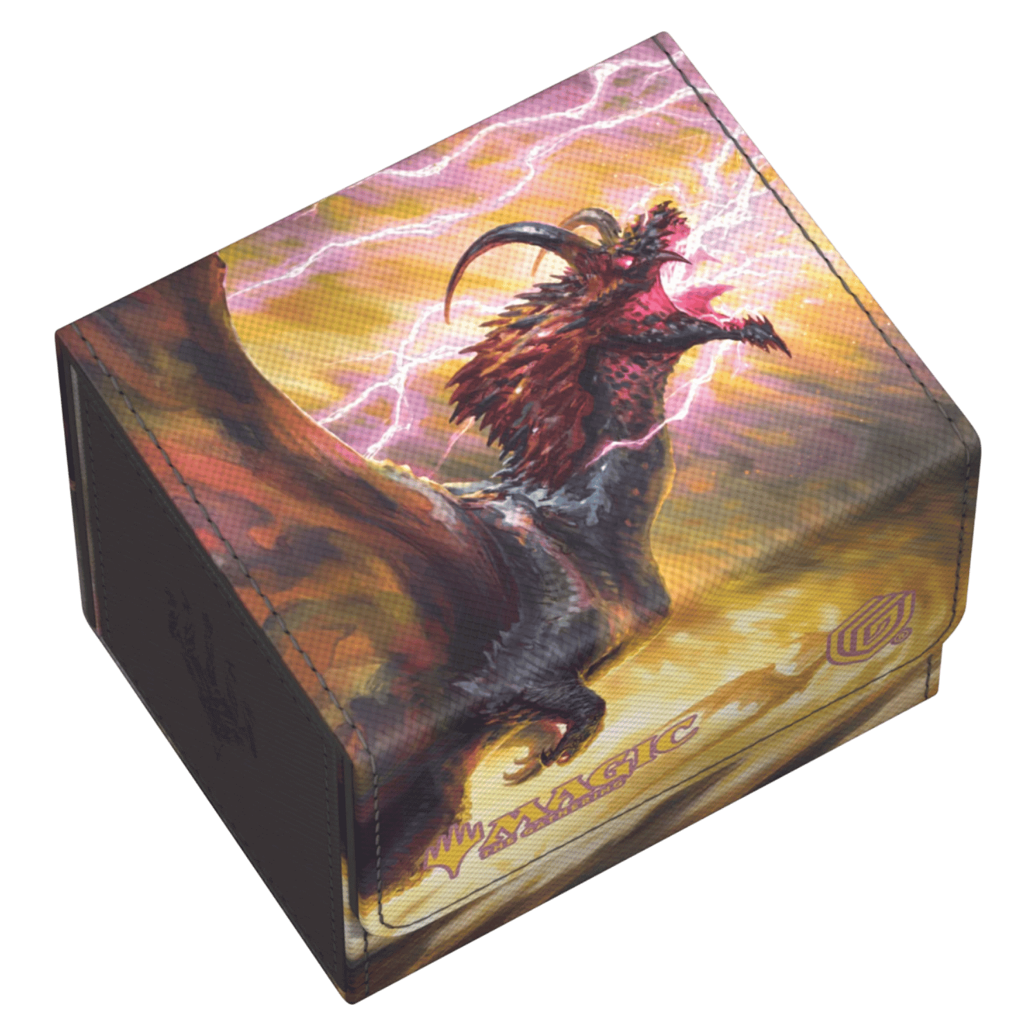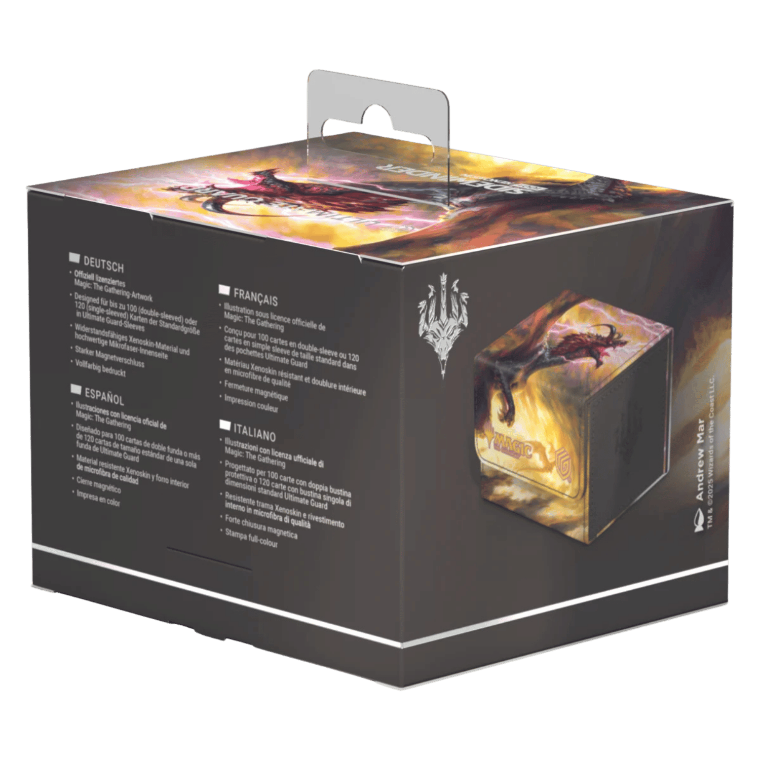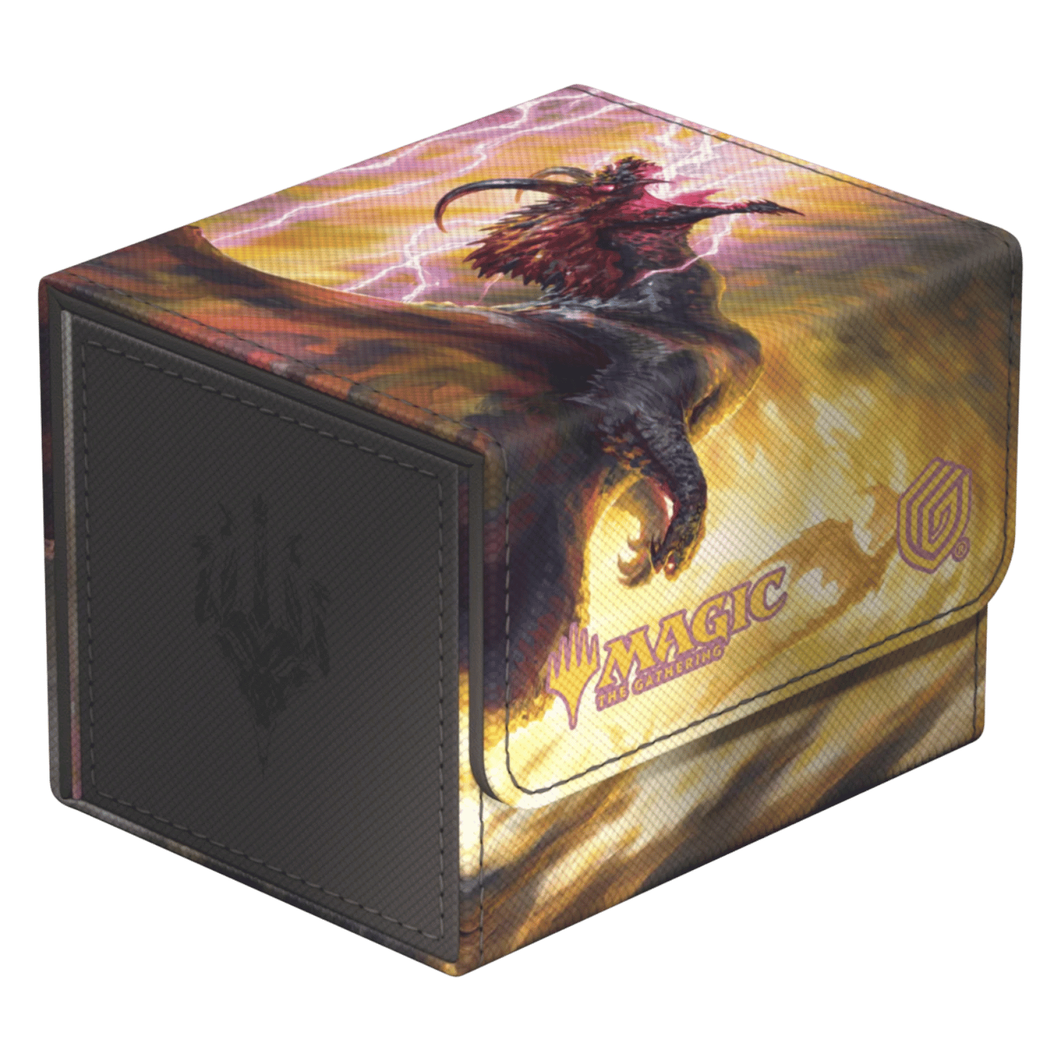 The Special Edition Ghostfire Sidewinder 100+ Xenoskin, with a spectacular shimmering embossing on the microfiber interior, is printed with officially licensed artworks from Magic: The Gathering’s Tarkir: Dragonstorm set. This high-quality deck box, made from durable Xenoskin material with a reliable magnetic closure, holds up to 100 double-sleeved or 120 single-sleeved cards.