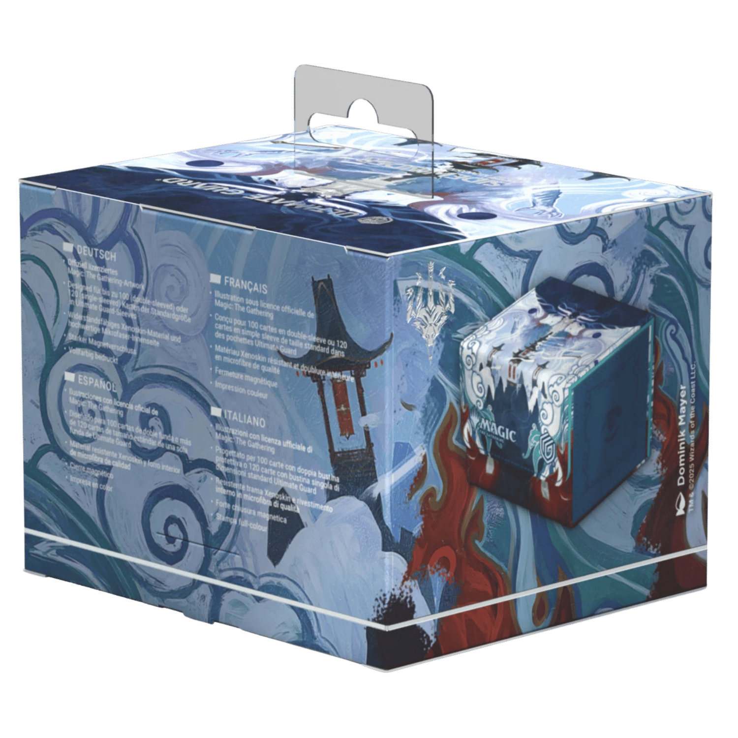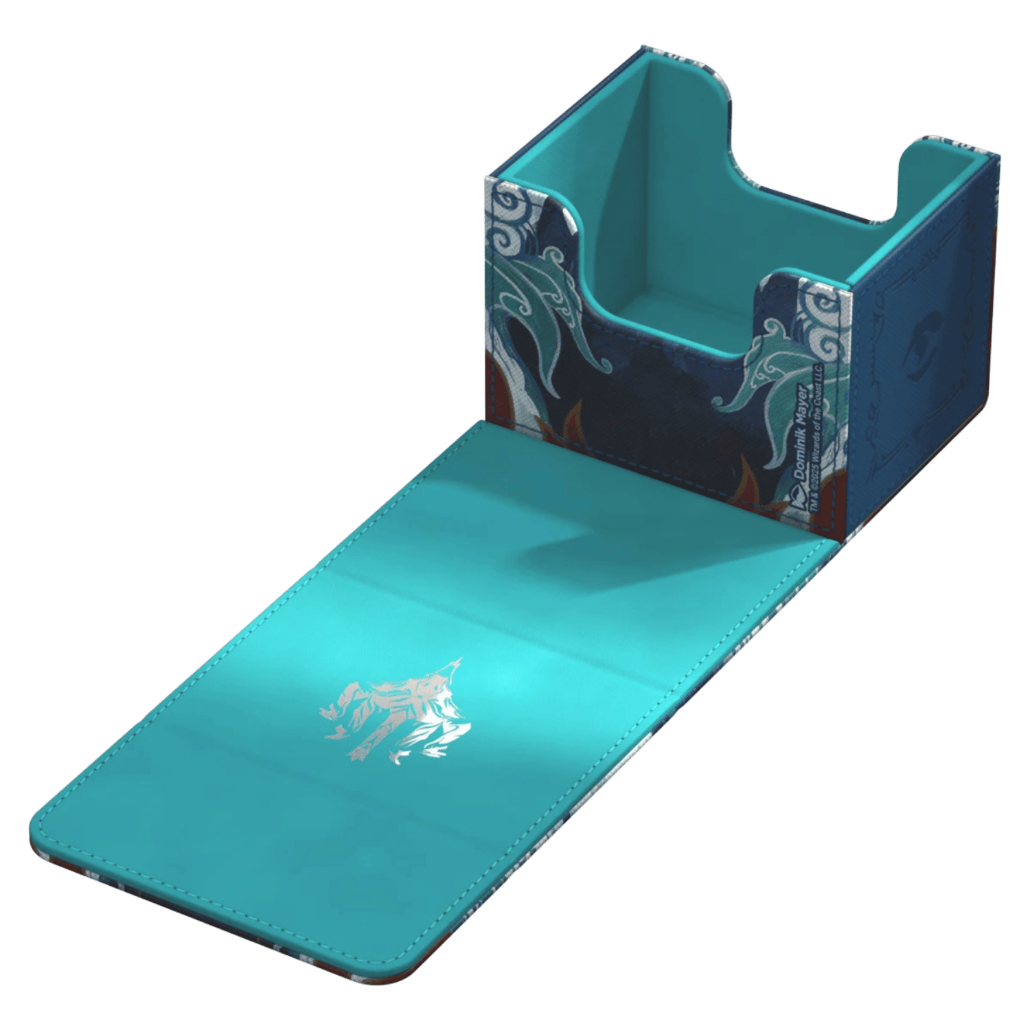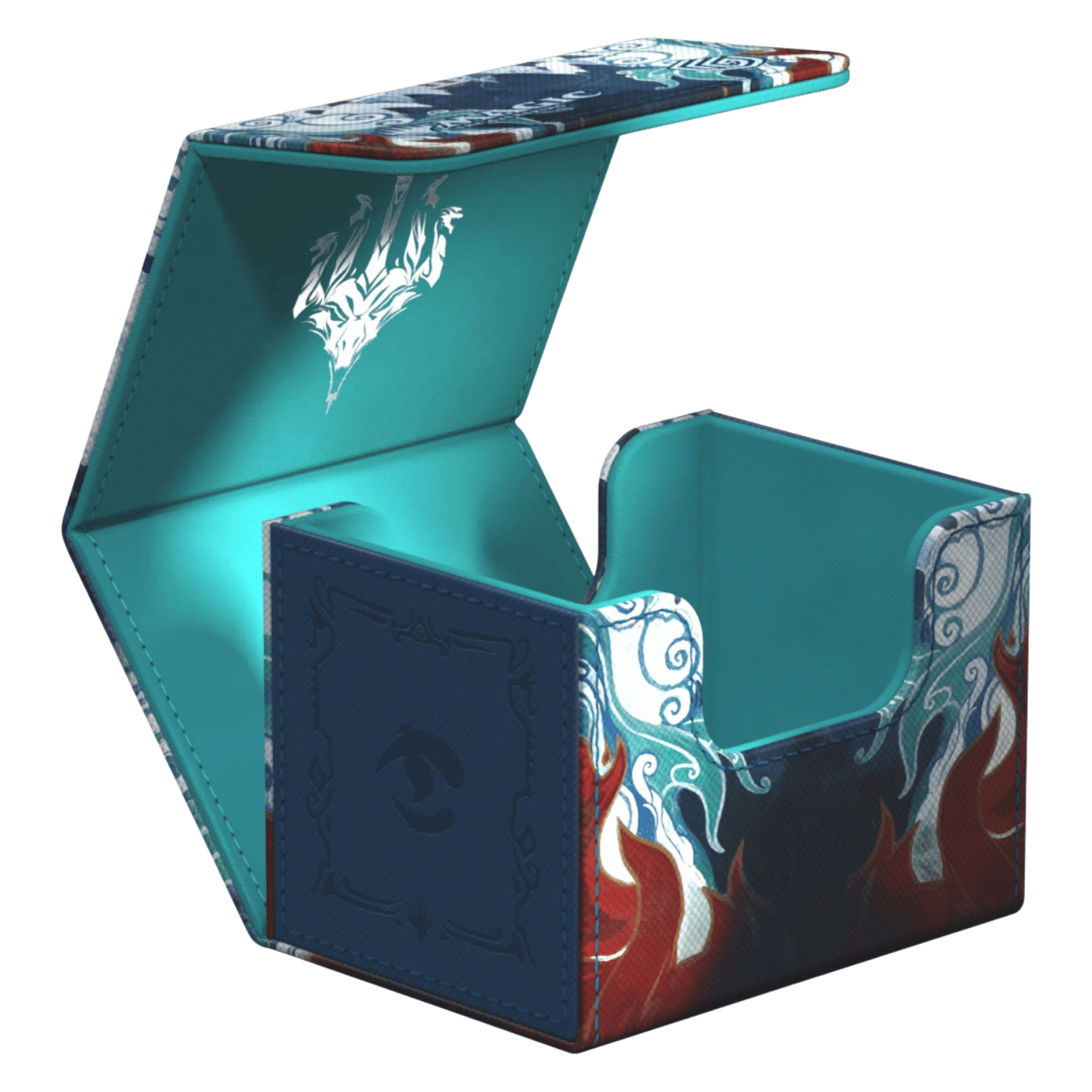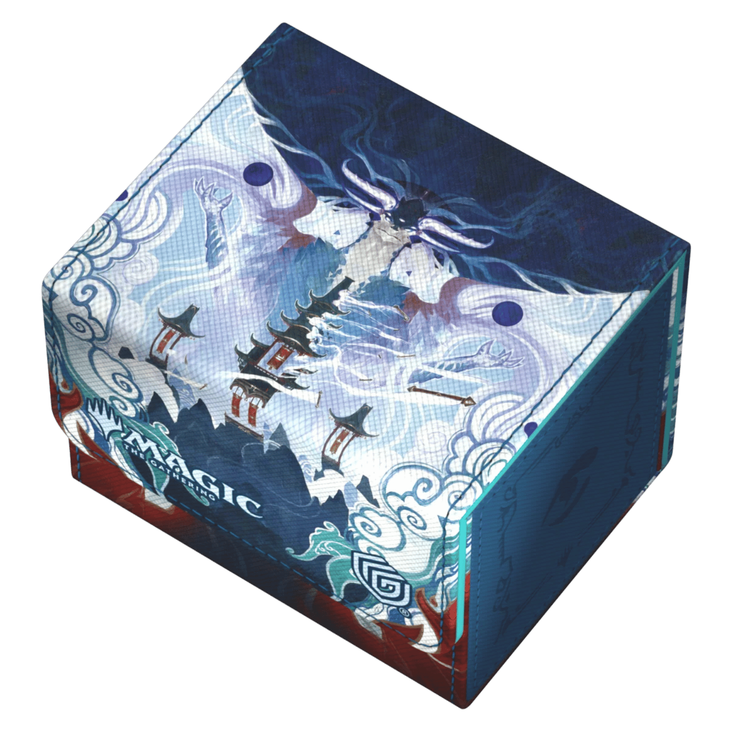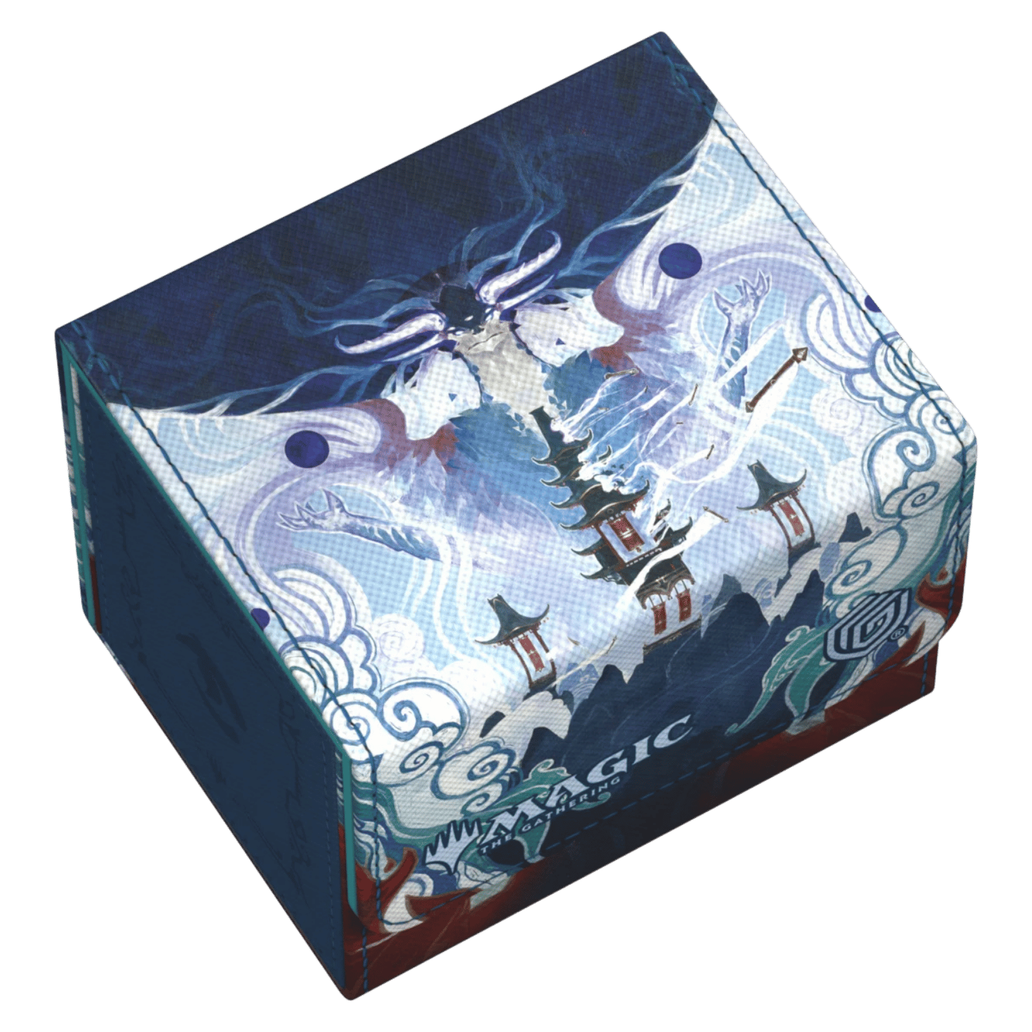 The Sidewinder 100+ made from durable Xenoskin material holds up to 100 double-sleeved or 120 single-sleeved cards, which are kept secure in the deck box thanks to a strong magnetic closure and soft microfiber interior. The sturdy, high-quality Xenoskin surface of the Sidewinder is printed in full color with officially licensed artwork from Magic: The Gathering’s Tarkir: Dragonstorm set.