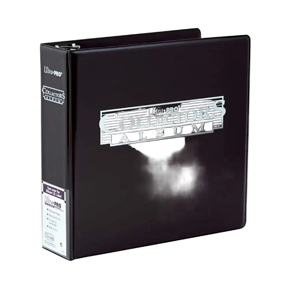 Ultra Pro Collectors Album is an album with three reinforced 3'' rings with boosters for easy opening and closing, and a foam padded cover. It can store up to 450 cards single-loaded in 50 9-pocket pages.